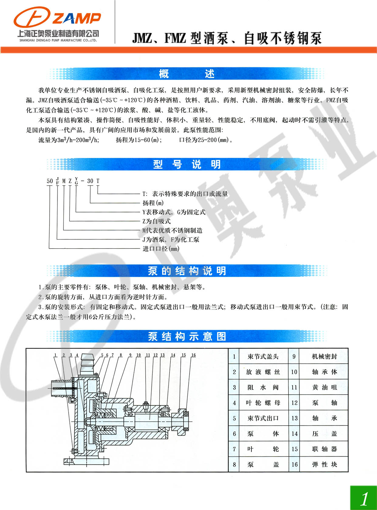 正奥公司所生产的不锈钢自吸酒泵、自吸化工泵,是按照用户新要求,采用新型机械密封组装,安装防爆,长年不漏,JMZ自吸酒泵适合输送(-35~+120℃)的各种酒精、饮料、乳品、药剂、汽油、溶剂油、糖浆等行业。FMZ自吸化工泵适合输送(-35~+120℃)的浓浆、酸、碱、盐等化工液体。本泵具有结构紧凑、操作简便、自吸性能好、体积小、重量轻、性能稳定、不用底阀、起动时不需引灌等特点。是国内的新一代产品。具有广阔的应用市场和发展前景。