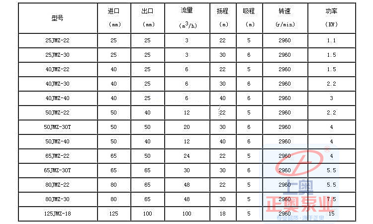JMZ、FMZ自吸酒泵自吸化工泵性能范围:流量为3M3/h~190M3/h,扬程为22m~60m,口径为:25mm~150mm。