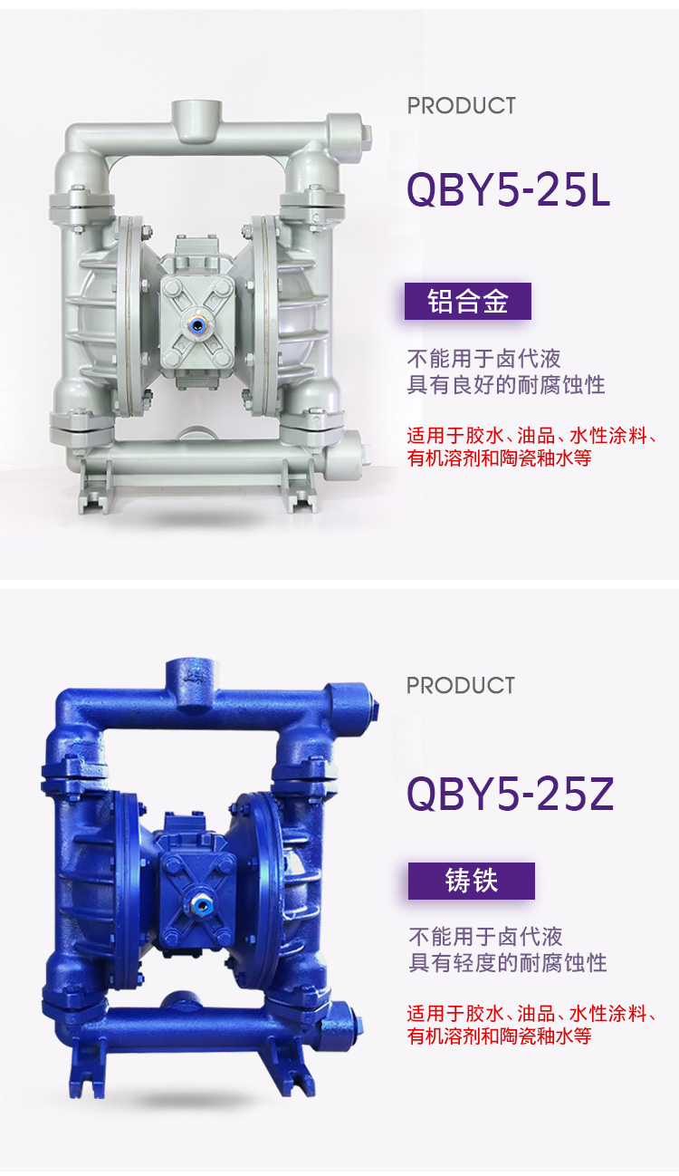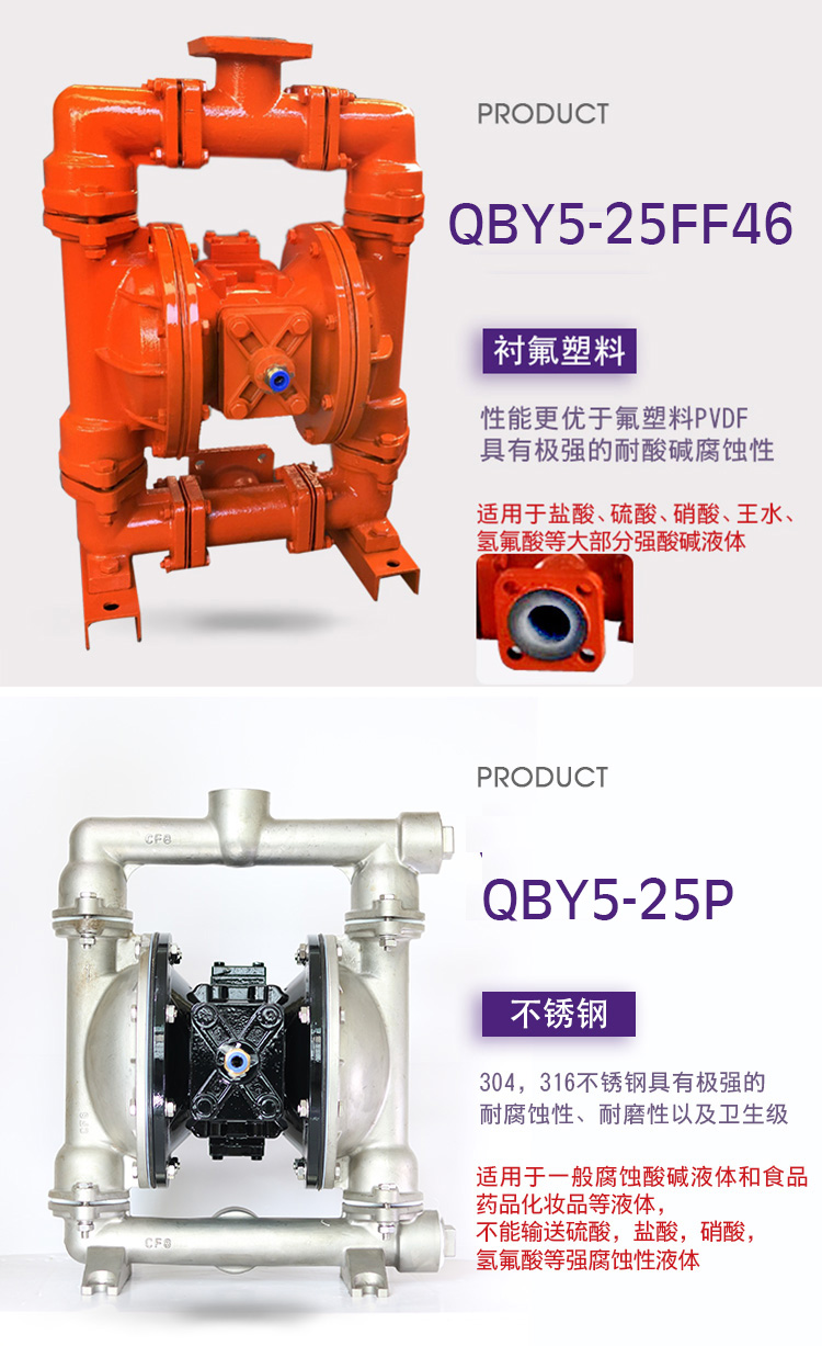 QBY5-F型气动隔膜泵是第五代气动隔膜泵,QBY5-25F型塑料气动隔膜泵 耐腐蚀泵是3044am永利集团3044noc泵业有限公司外形步进一进改,机械外观加美;QBY5-25F型塑料气动隔膜泵 耐腐蚀气动隔膜泵卡不机,油无气动隔膜泵,高程吸大量流隔膜泵,国内气动隔膜泵并对性能的一加步进强,效更率高;正奥公司而且练熟的握掌QBY5气动隔膜泵生产。欢迎选择上奥牌气动隔膜泵。