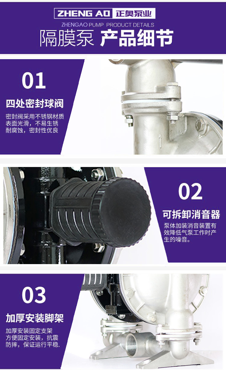 正奥QBY5-40P型不锈钢气动隔膜泵 化工泵正奥公司主导产品有:气动隔膜泵,塑料隔膜泵,不锈钢隔膜泵,隔膜泵型号,不锈钢磁力泵,氟塑料磁力泵,不锈钢水泵,不锈钢螺杆泵,单螺杆泵,电动油桶泵,管道离心泵,不锈钢离心泵,立式离心泵,卧式离心泵,不锈钢自吸泵,自吸排污泵,耐腐蚀泵,不锈钢化工泵,隔膜式计量泵,液压式计量泵,螺杆泵,齿轮油泵,耐腐蚀化工泵。