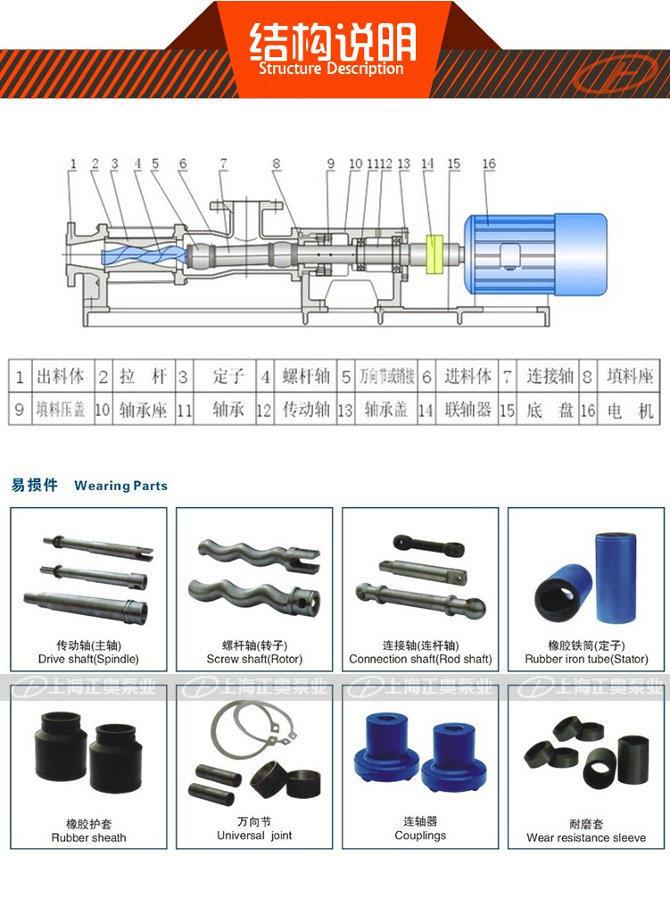 G型上奥牌螺杆泵主要致力于输送有粘度且流动性差的介质,如: