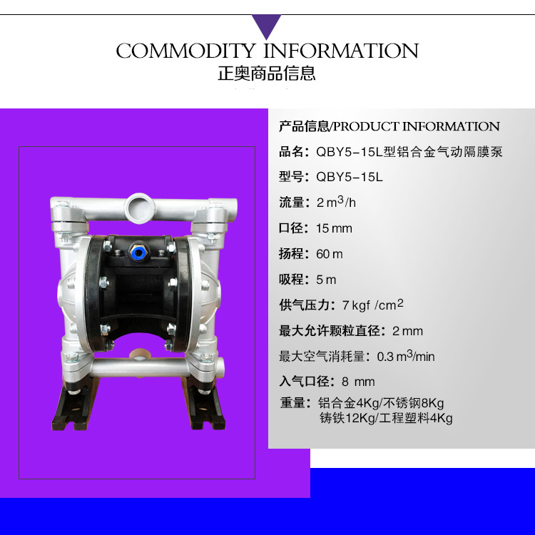 正奥泵业QBY5-15L铝合金气动隔膜泵化工泵气动化工泵是3044am永利集团3044noc泵业有限公司外形步进一进改,机械外观加美;正奥泵业QBY5-15L铝合金气动隔膜泵化工泵卡不机,油无气动隔膜泵,高程吸大量流隔膜泵,国内气动隔膜泵并对性能的一加步进强,效更率高;正奥公司而且练熟的握掌QBY5气动隔膜泵生产。欢迎选择上奥牌气动隔膜泵。