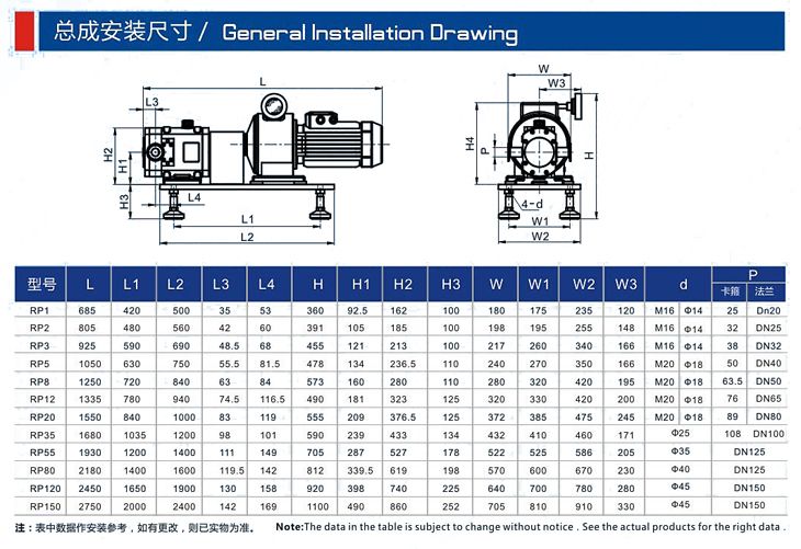 RP-5型不锈钢转子泵的转子与传动齿轮分开,泵腔内各零配件之间保持一定的间隙,相互不接触,无磨损,低噪音,可靠性好,使用寿命长,节能降耗。配置变频器后,可以随意调节流量,做一般计量泵使用。可输送汽、液、固等三相混合物料。可以输送的介质的粘度可高达1000000CP和含固量达55%的浆料。结构紧凑,相对螺杆泵占用空间小。