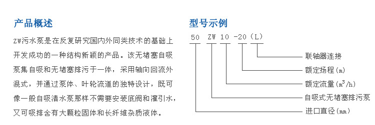 自吸排污泵|无堵塞污水自吸泵|ZW自吸式排污泵|3044am永利集团3044noc自吸泵|产品概述