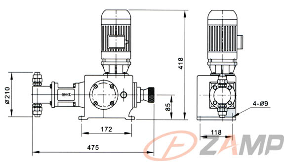| 计量阀: 聚氯乙烯、SUS304、SUS316、聚四氟乙烯 | 电机: 二相、三相标准电机或防爆电机 |