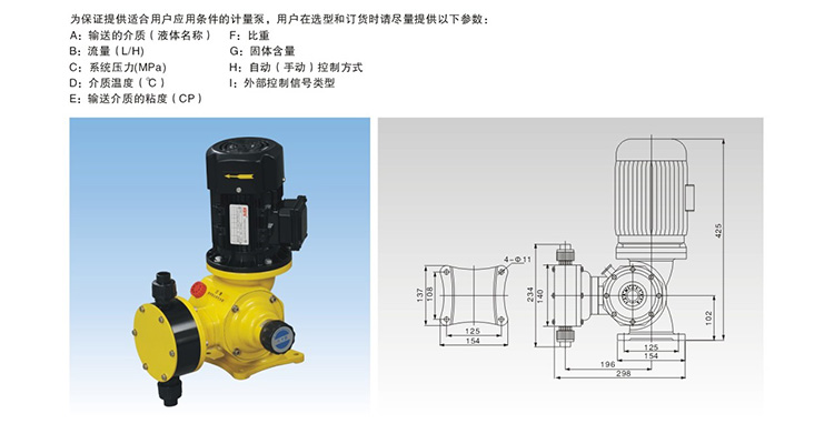 GM隔膜式计量泵技术参数选型: