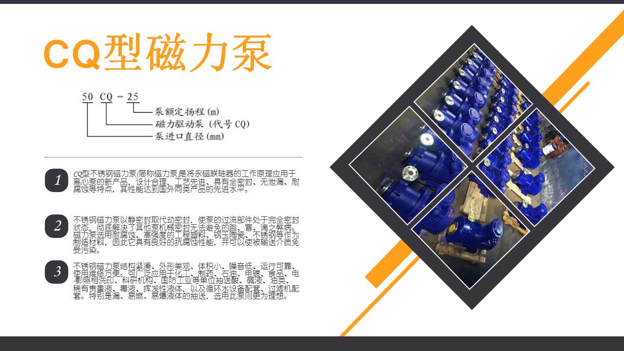 二、CQ型不锈钢磁力泵无泄漏磁力驱动泵主要特点: