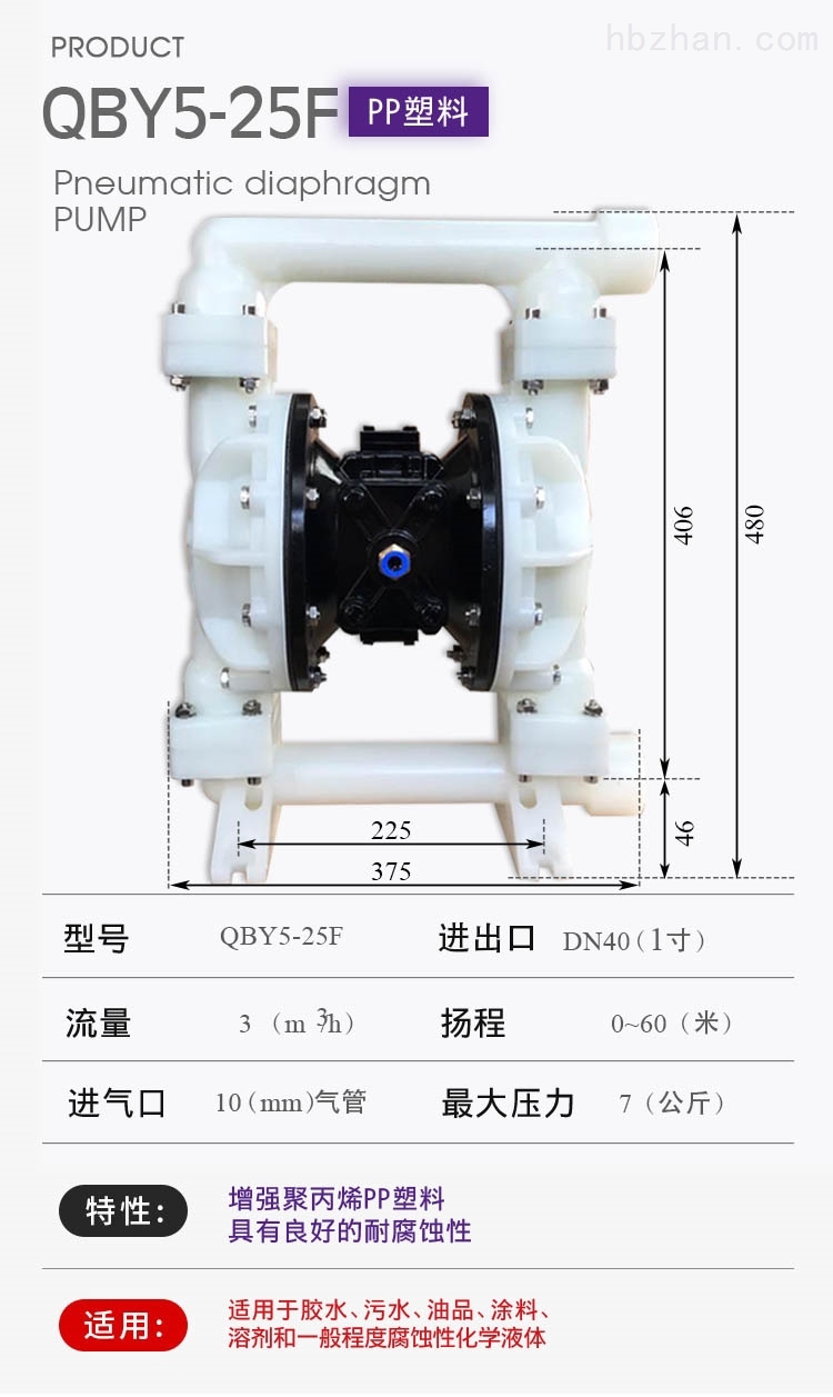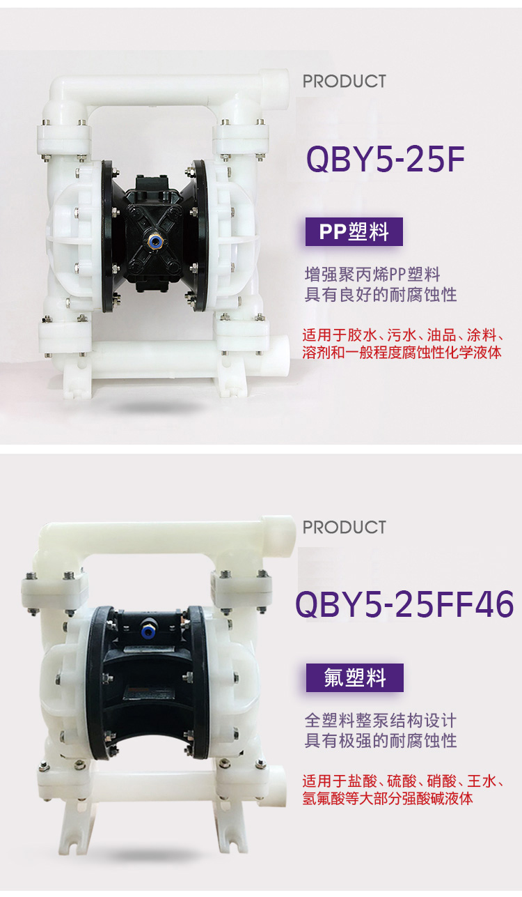 QBY5-F型气动隔膜泵是第五代气动隔膜泵,QBY5-25F型塑料气动隔膜泵 耐腐蚀泵是3044am永利集团3044noc泵业有限公司外形步进一进改,机械外观加美;QBY5-25F型塑料气动隔膜泵 耐腐蚀气动隔膜泵卡不机,油无气动隔膜泵,高程吸大量流隔膜泵,国内气动隔膜泵并对性能的一加步进强,效更率高;正奥公司而且练熟的握掌QBY5气动隔膜泵生产。欢迎选择上奥牌气动隔膜泵。