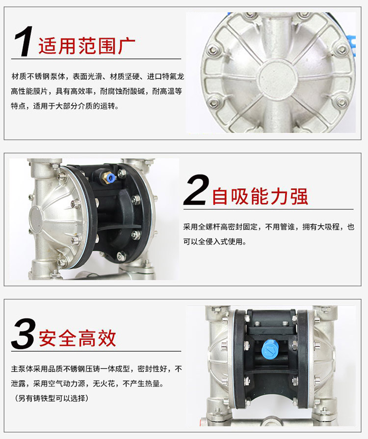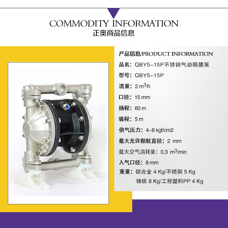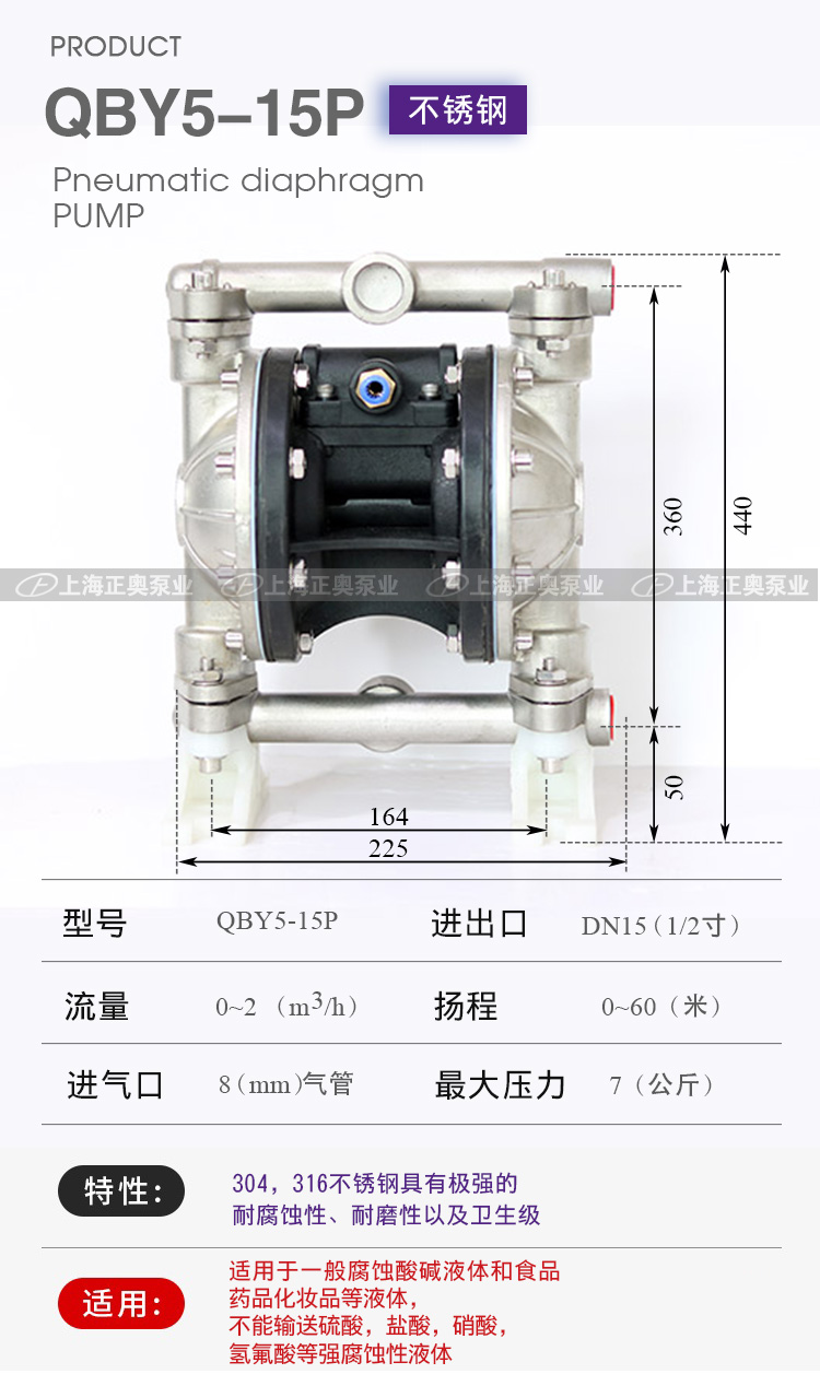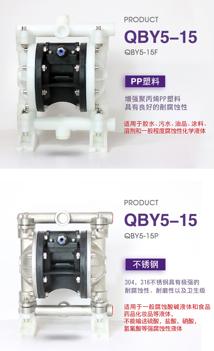 正奥QBY5-15P不锈钢气动隔膜泵气动化工泵是3044am永利集团3044noc泵业有限公司外形步进一进改,机械外观加美;正奥QBY5-15P不锈钢气动隔膜泵气动化工泵卡不机,油无气动隔膜泵,高程吸大量流隔膜泵,国内气动隔膜泵并对性能的一加步进强,效更率高;正奥公司而且练熟的握掌QBY5气动隔膜泵生产。欢迎选择上奥牌气动隔膜泵。