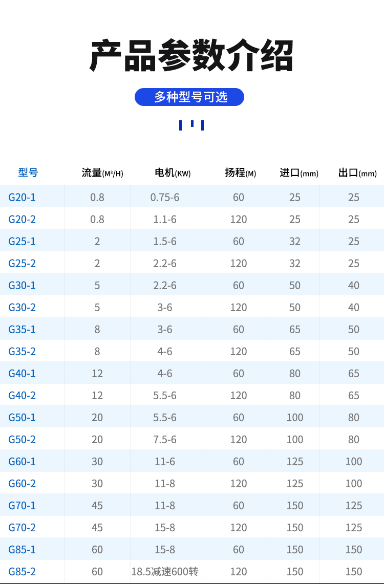 环境保护:工业污水、生活污水、含有固体颗粒及短纤维的污泥浊水的输送,特别使用于油水分离器