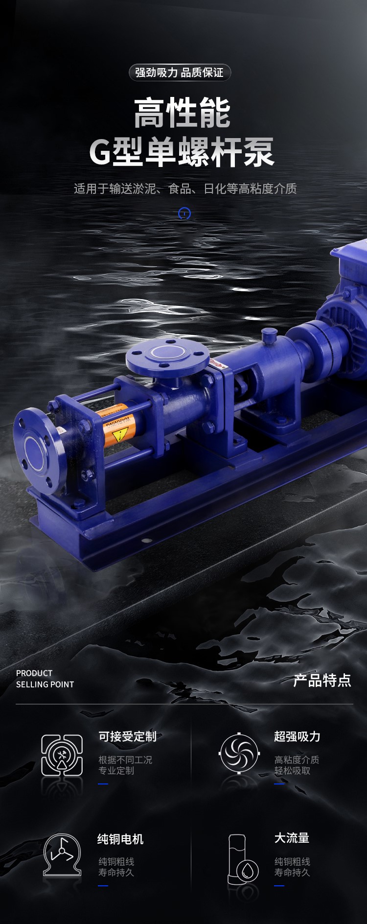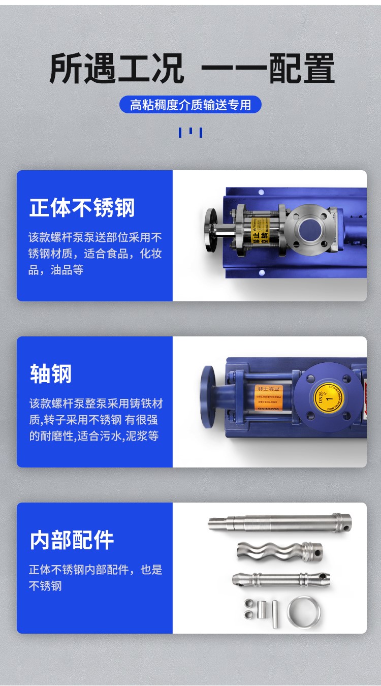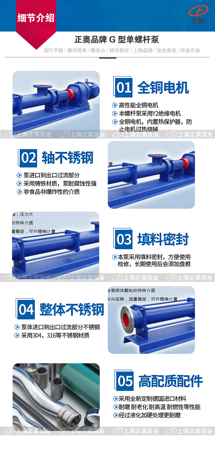 G型上奥牌螺杆泵主要致力于输送有粘度且流动性差的介质,如: