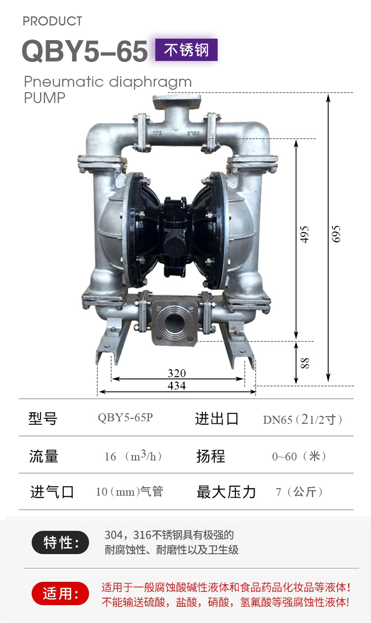 正奥QBY5-50P型不锈钢气动隔膜泵 不锈钢化工泵是第五代气动隔膜泵是3044am永利集团3044noc泵业有限公司外形步进一进改,机械外观加美;卡不机,油无气动隔膜泵,高程吸大量流隔膜泵,国内气动隔膜泵并对性能的一加步进强,效更率高;正奥QBY5-50P型不锈钢气动隔膜泵 化工泵正奥公司而且练熟的握掌QBY5气动隔膜泵生产。欢迎选择上奥牌气动隔膜泵。