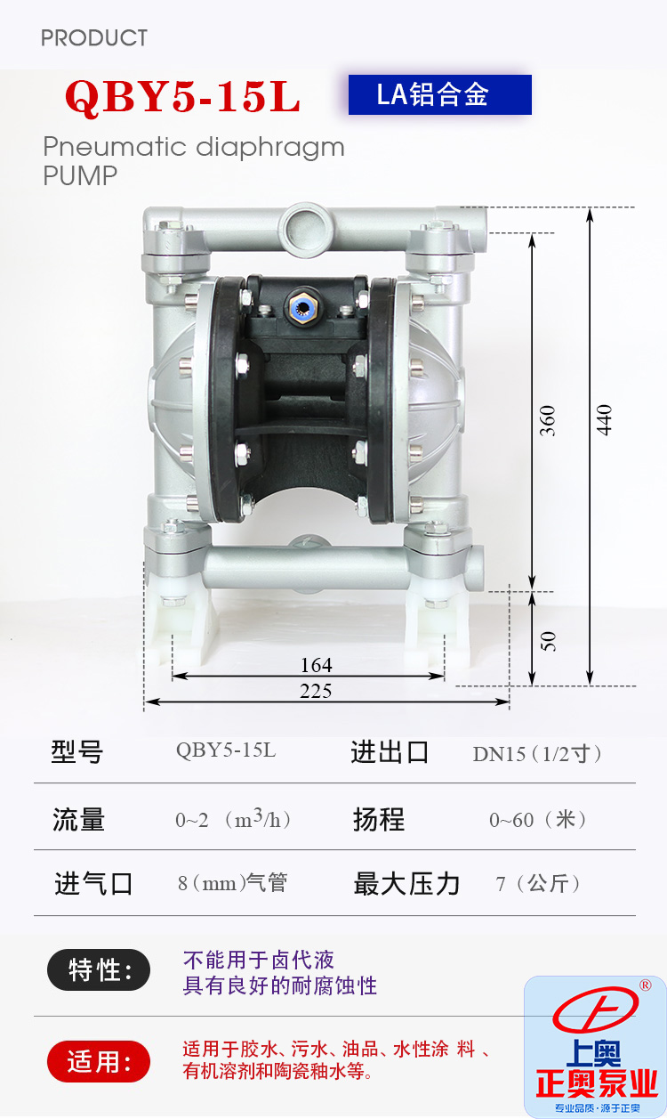 正奥泵业QBY5-15L铝合金气动隔膜泵化工泵气动化工泵是3044am永利集团3044noc泵业有限公司外形步进一进改,机械外观加美;正奥泵业QBY5-15L铝合金气动隔膜泵化工泵卡不机,油无气动隔膜泵,高程吸大量流隔膜泵,国内气动隔膜泵并对性能的一加步进强,效更率高;正奥公司而且练熟的握掌QBY5气动隔膜泵生产。欢迎选择上奥牌气动隔膜泵。