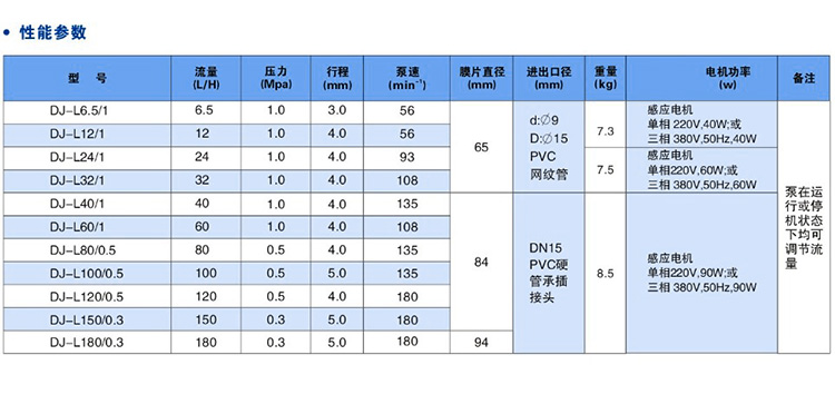 DJ-L型隔膜式计量泵是由电机驱动的机械隔膜计量泵,适用于底压力场合的流体**计量,有多种材质泵头可选,膜片统一采用多层复合PTFE材质。因其具有很高的计量精度和稳定性能及的使用工求,而广泛应用于污水处理,食品剂添加,各种特殊介质的输送。