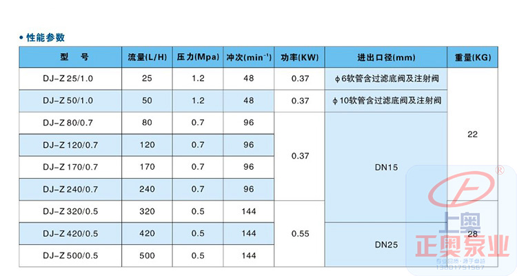 一、DJ-Z型机械驱动隔膜式计量泵技术参数:
