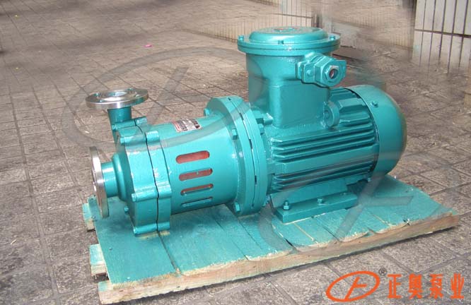 CQG型耐高温磁力驱动泵(耐温≤250℃)(简称磁力泵)通常由电机,磁力偶合器水冷却装置和耐腐蚀离心泵四大部分组成,其主要特点是利用磁力偶合器传递动力,无泄漏。当电动机带动磁力偶合器的外磁钢旋转时,磁力线穿过了间隙和隔离套,作用与内磁钢上,使泵转子与电动机同步旋转,无机械接触地传递扭矩。在泵的动力输入端,由于液体被封闭在静止的隔离套内,没有动密封因而无泄漏,磁力偶合器的磁性材料采用了高温介质而保持强大的磁力扭矩。在电机与磁力偶合器之间加装了水冷却装置,防止泵送高温介质之热量传导至电机。以保持电机的正常运转,从而达到无泄露输送高温介质。