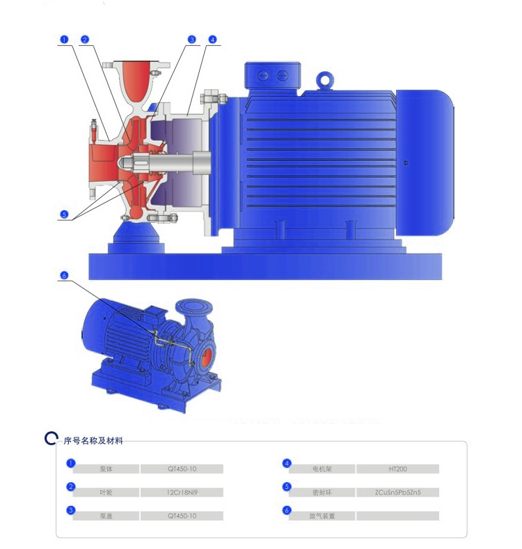 6 泵体:压出塞和吸入室采用优良水力模型设计而成,既美观又高效,设有安装底脚,便于安装和运行稳固。