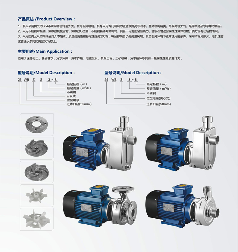1、泵头采用抛光的304不锈钢精密铸造外壳,杜绝瑕疵暗缝,机身采用专门研制的蓝色妖姬亮彩油漆,整体结构精美,外观优异大气,是同类精品水泵中的精品。
